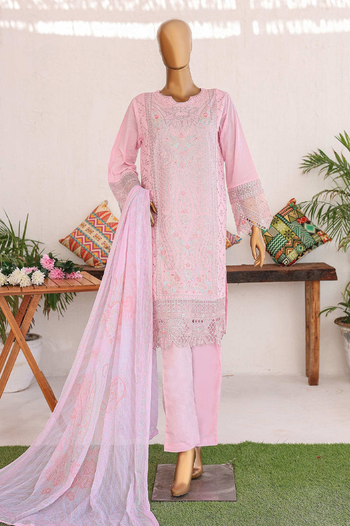 Bin Saeed Stitched 3 Piece Luxury Emb Lawn Vol-02 Collection'2024-LF-977-Pink