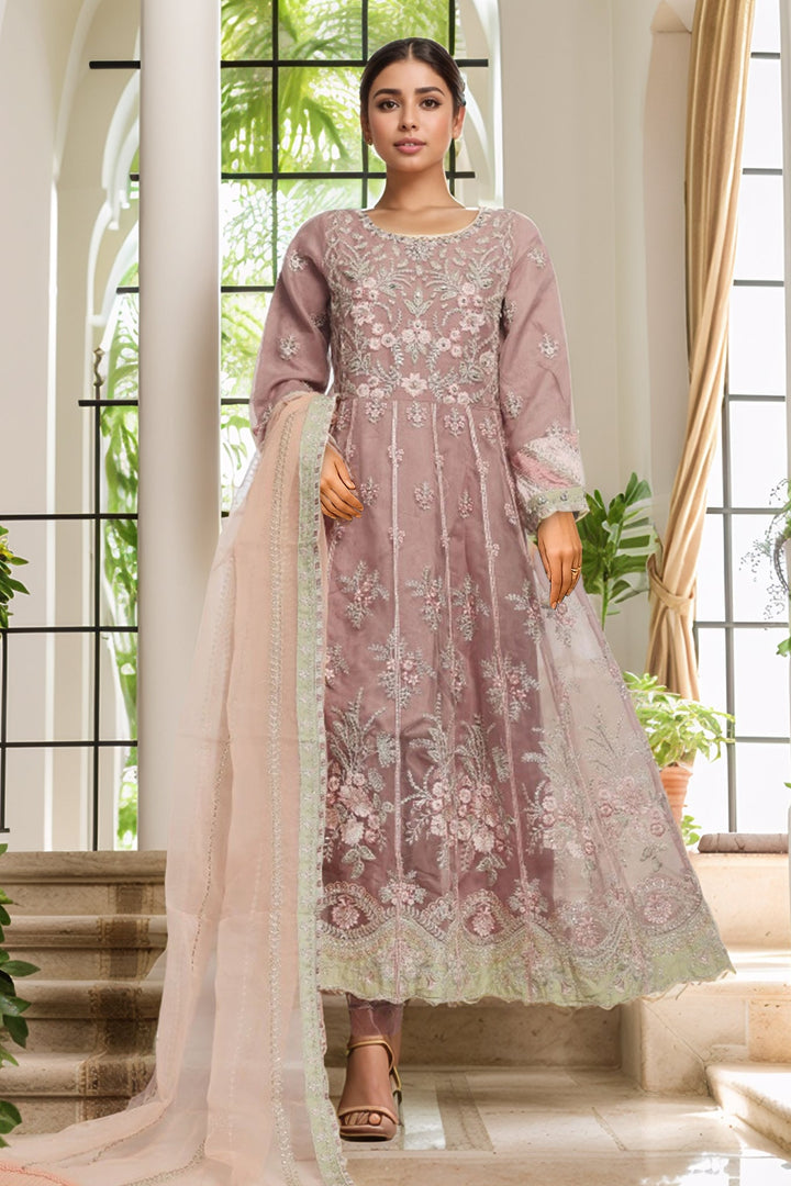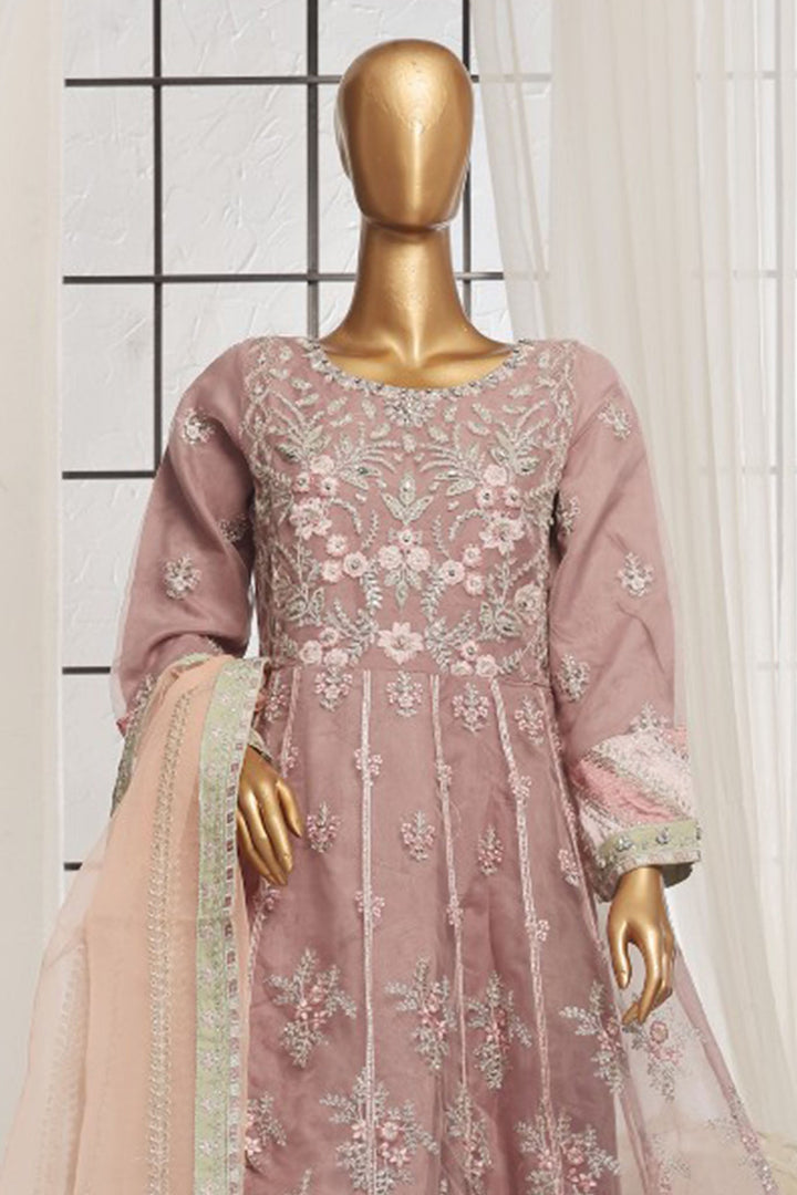 Bin Saeed Stitched 3 Piece Luxury Emb Organza Frock Collection'2025-OWS-1833-T Pink
