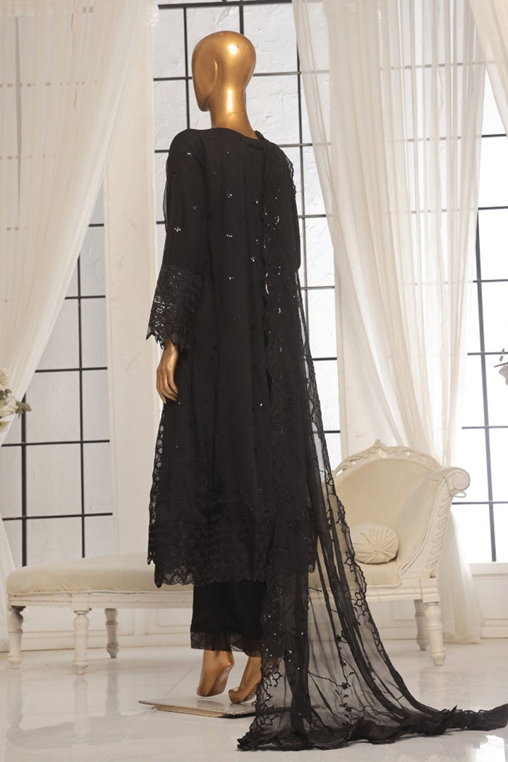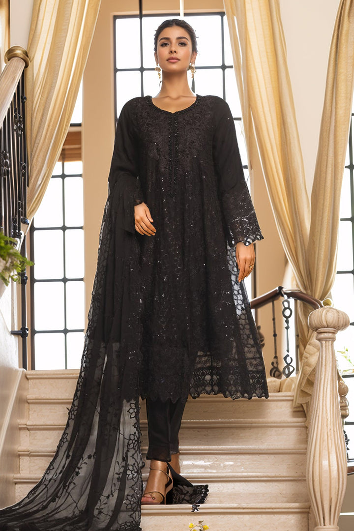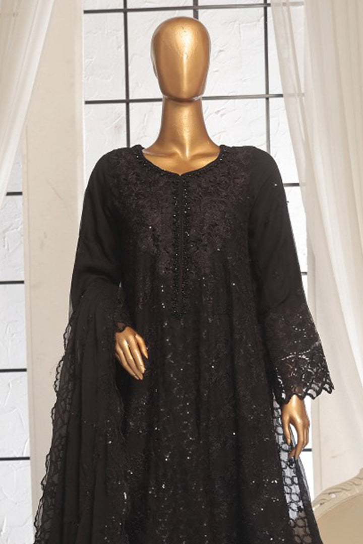 Bin Saeed Stitched 3 Piece Luxury Emb Organza Frock Collection'2025-OWS-1834-Black
