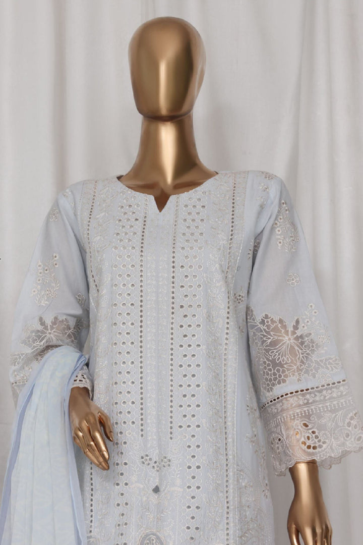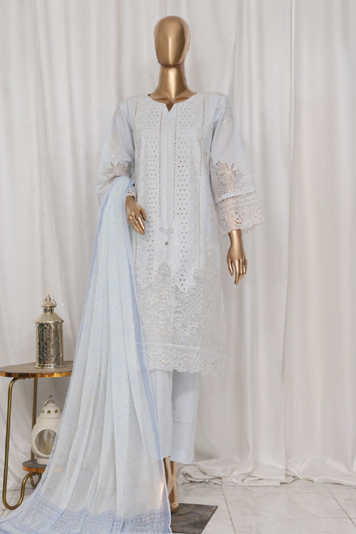 Bin Saeed Stitched 3 Piece Luxury Plain Cotton Vol-03 Collection-LF-1721-Sky