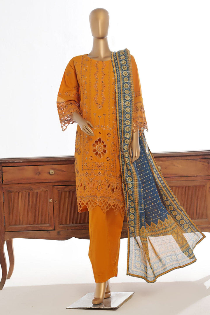 Bin Saeed Stitched 3 Piece Luxury Plain Cotton Vol-03 Collection-LF-1724-Mustard