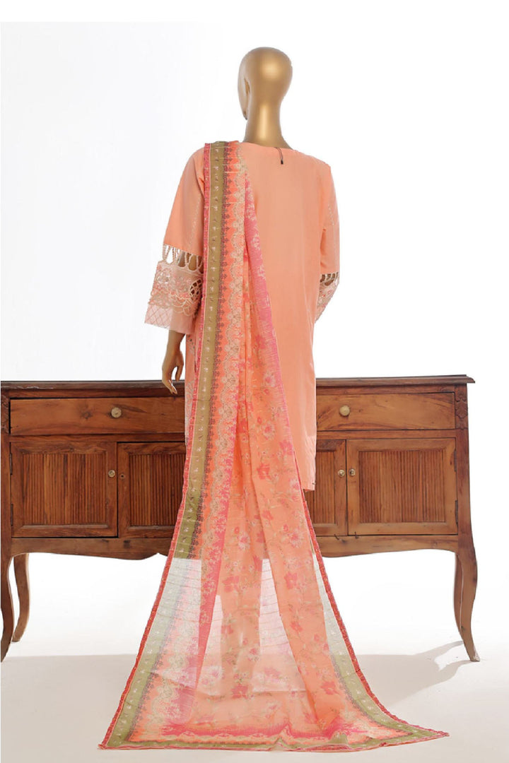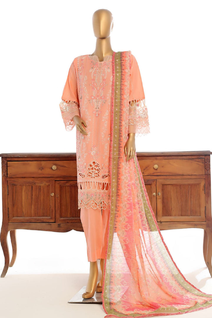 Bin Saeed Stitched 3 Piece Luxury Plain Cotton Vol-03 Collection-LF-1726-Peach