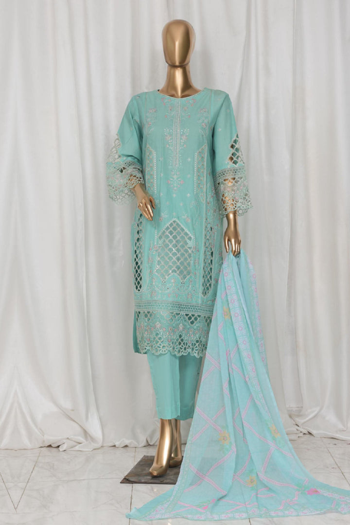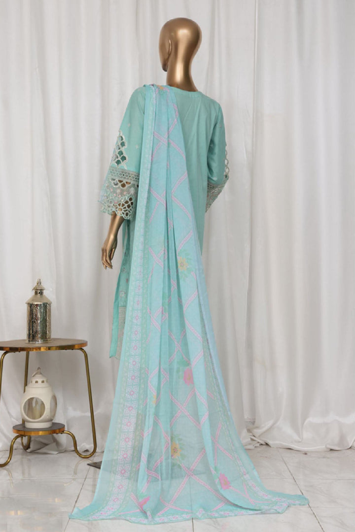Bin Saeed Stitched 3 Piece Luxury Plain Cotton Vol-03 Collection-LF-1727-Sea Green