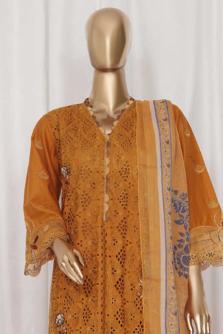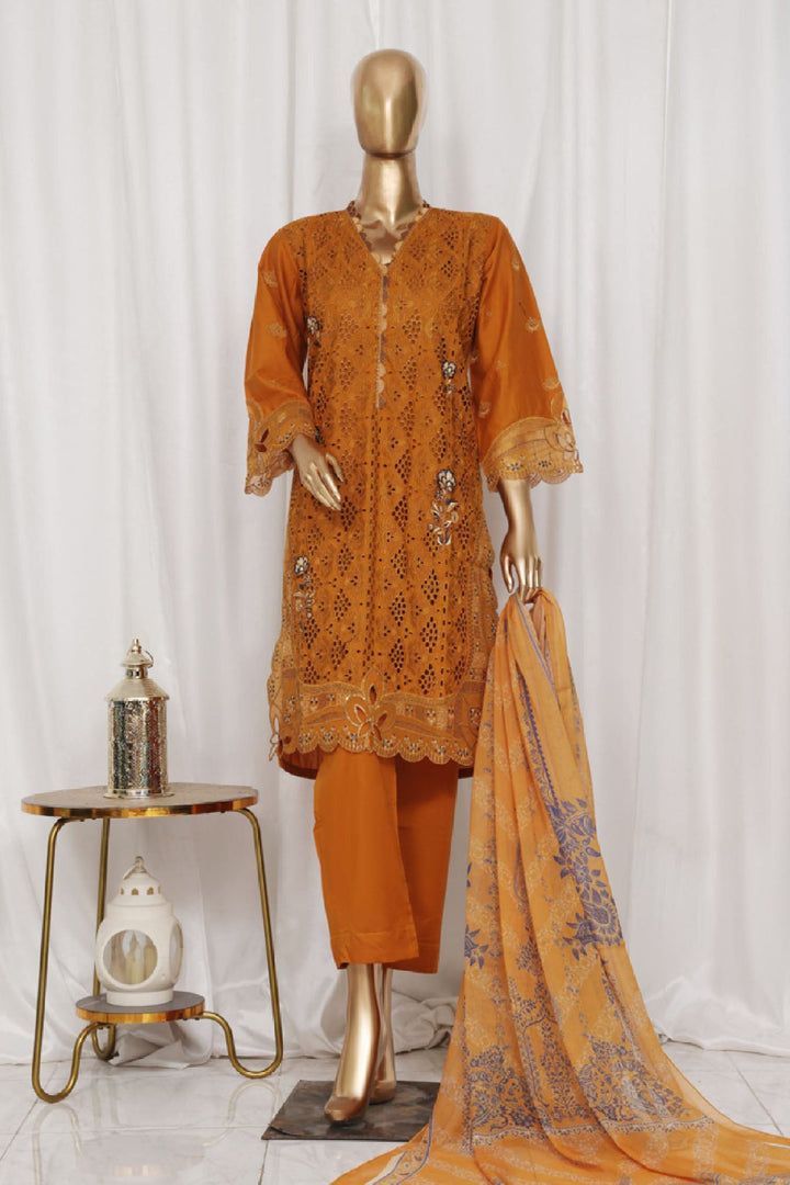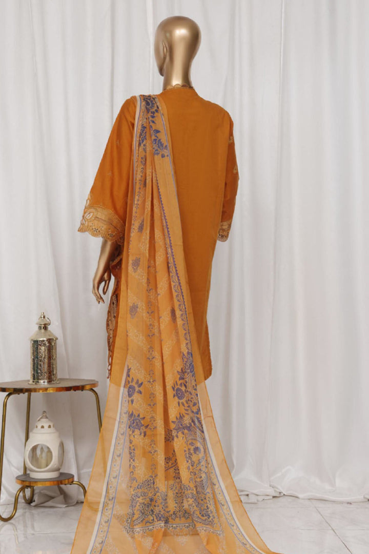 Bin Saeed Stitched 3 Piece Luxury Plain Cotton Vol-03 Collection-LF-1731-Mustard