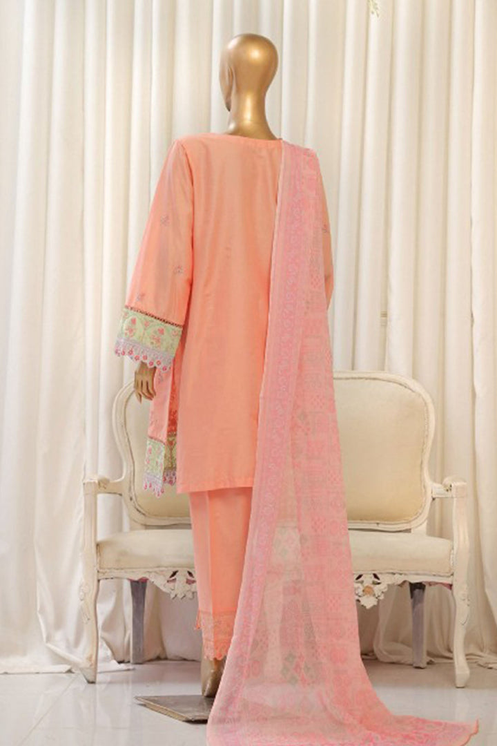 Bin Saeed Stitched 3 Piece Luxury Plain Cotton With Chiffon Dupatta Collection'2025-SMPC-1863-Peach