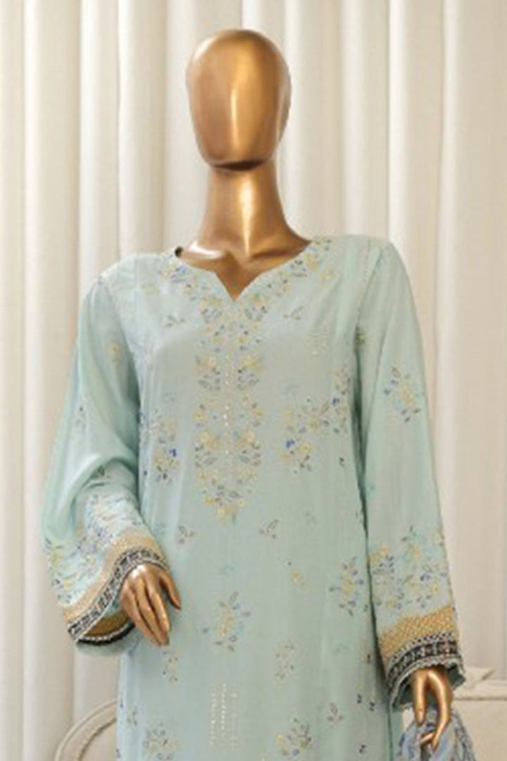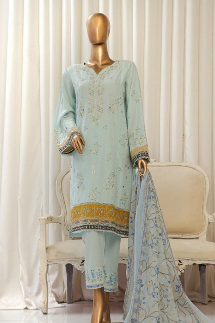 Bin Saeed Stitched 3 Piece Luxury Plain Cotton With Chiffon Dupatta Collection'2025-SMPC-1868-Ferozi