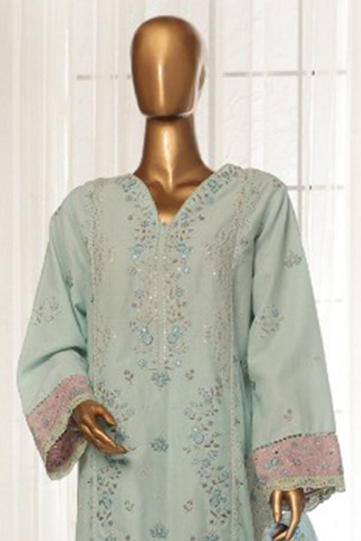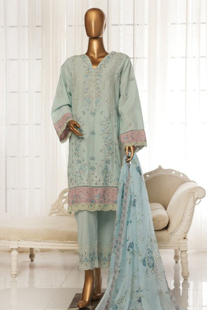 Bin Saeed Stitched 3 Piece Luxury Plain Cotton With Chiffon Dupatta Collection'2025-SMPC-1869-Ferozi