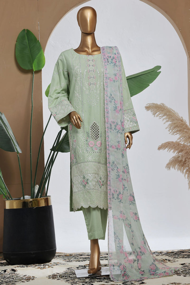 Bin Saeed Stitched 3 Piece Luxury Plain Cotton With Chiffon Dupatta Collection'2025-SMPC-2072-Pista