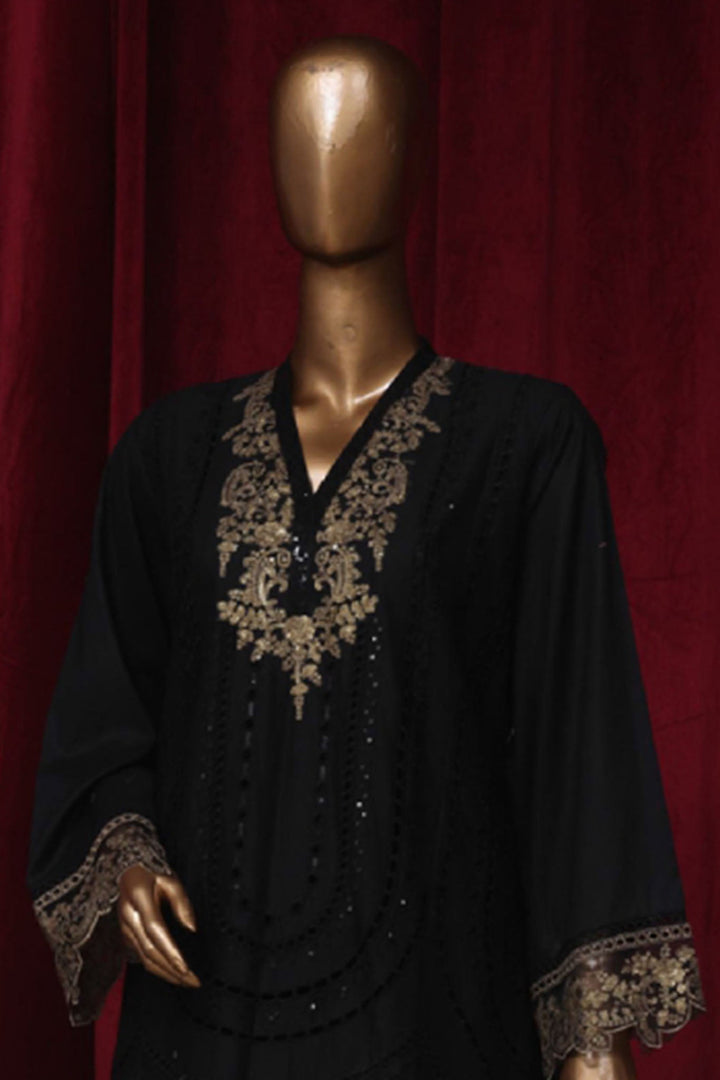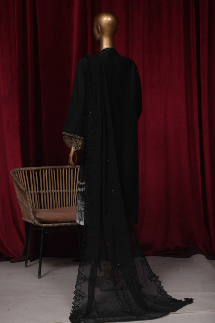 Bin Saeed Stitched 3 Piece Luxury Plain Emb Cotton Vol-03 Collection-LF-1797-Black