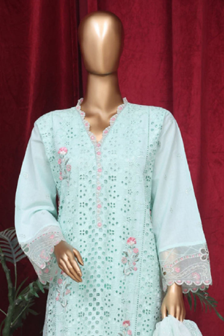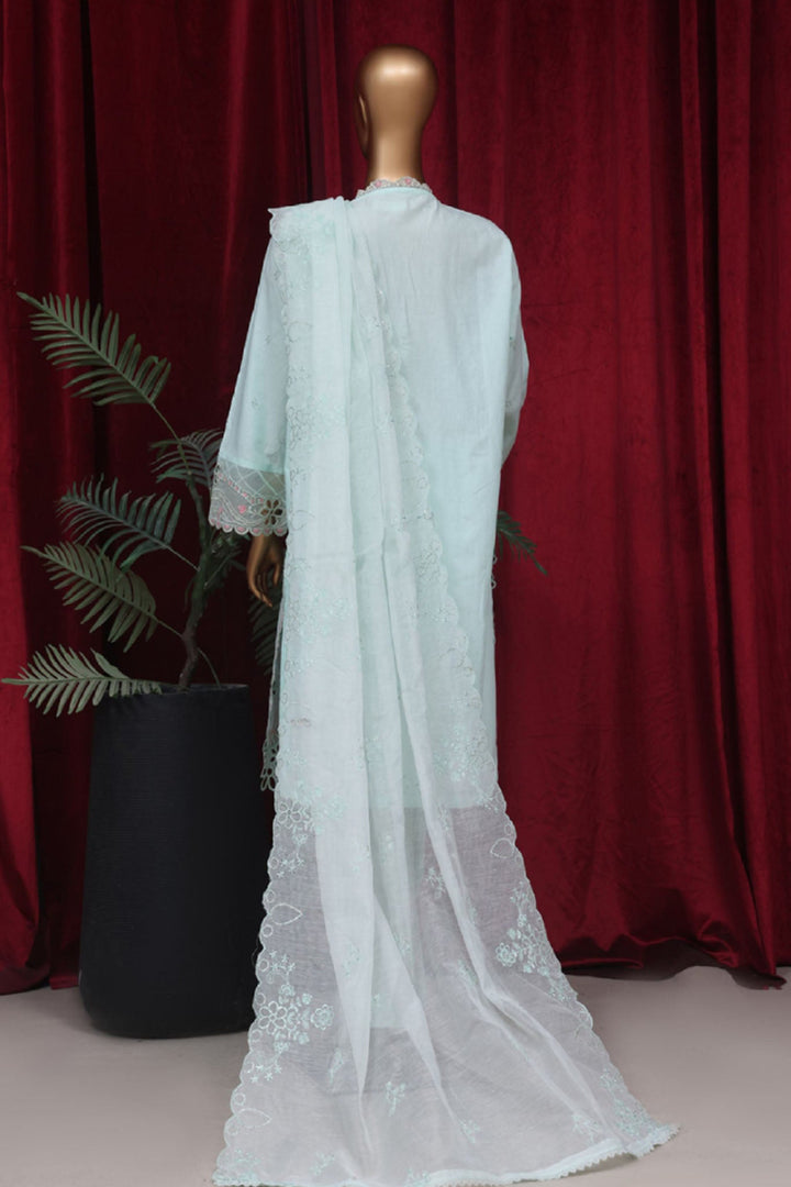 Bin Saeed Stitched 3 Piece Luxury Plain Emb Cotton Vol-03 Collection-LF-1798-Ferozi
