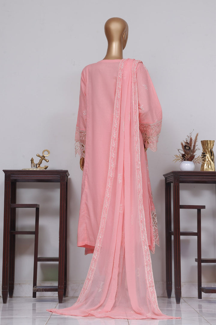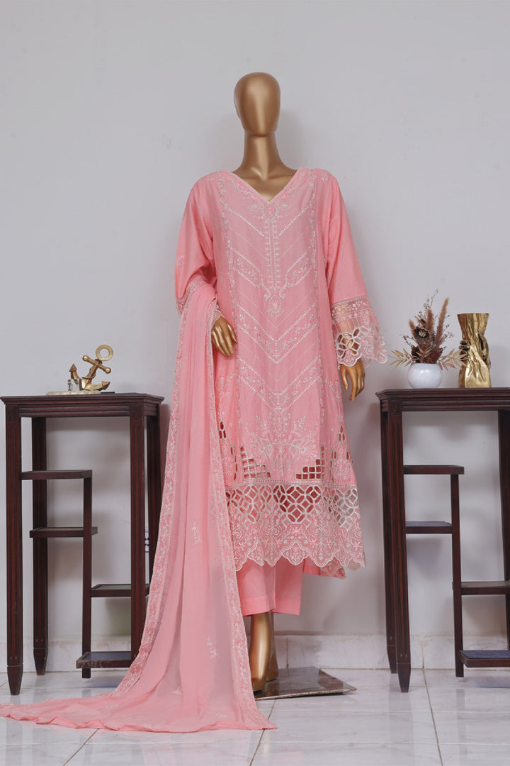 Bin Saeed Stitched 3 Piece Luxury Self Emb Cotton Frocks Collection'2024-SMK-1012-Pink