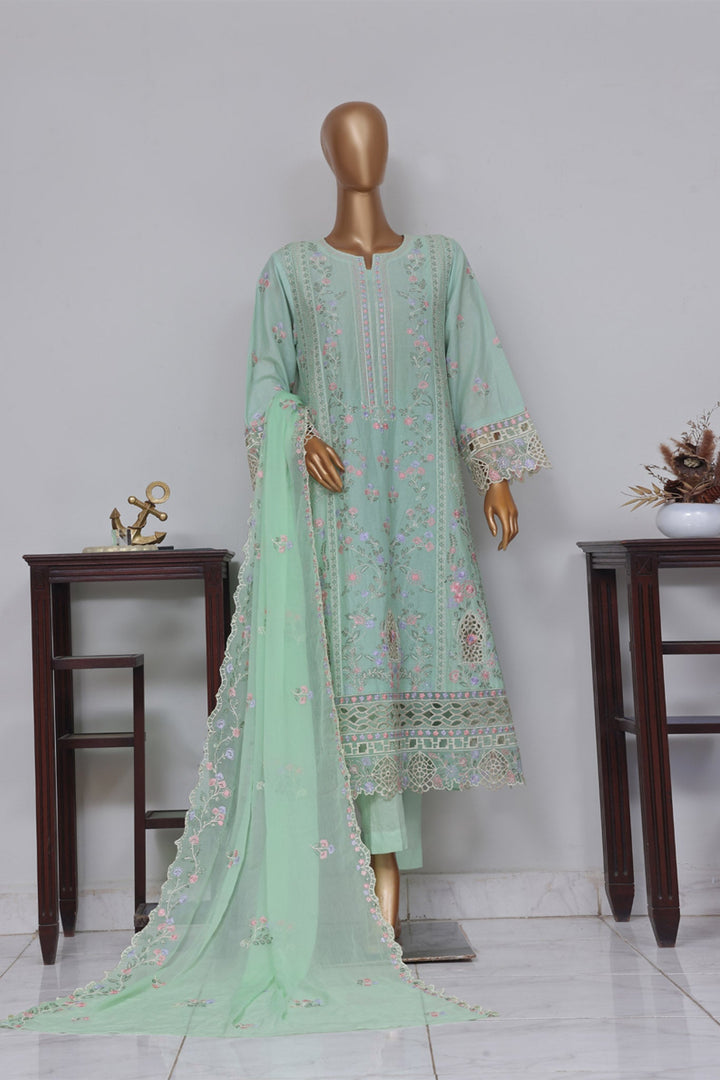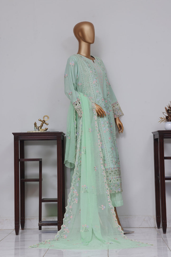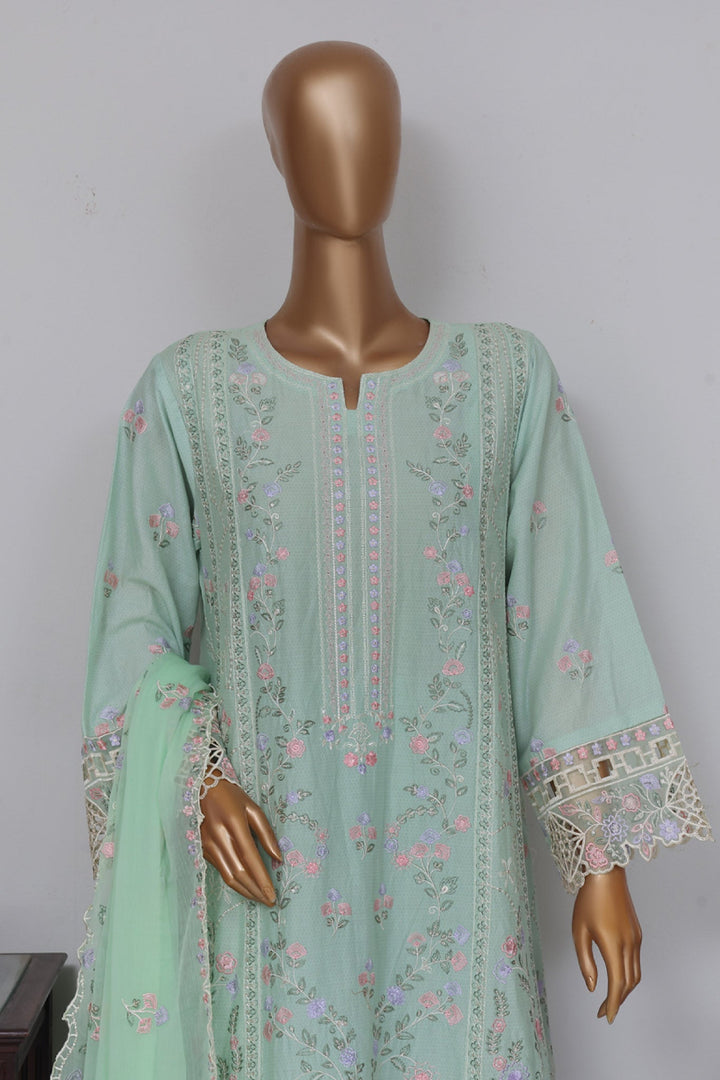 Bin Saeed Stitched 3 Piece Luxury Self Emb Cotton Frocks Collection'2024-SMK-1014-Mint