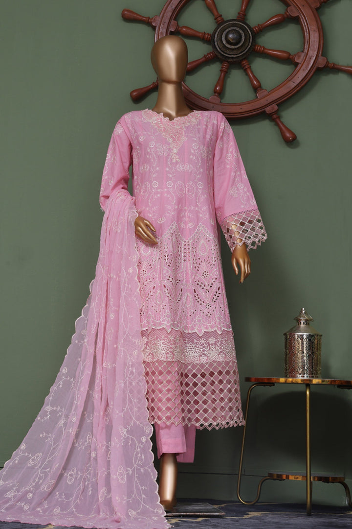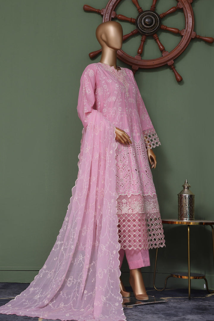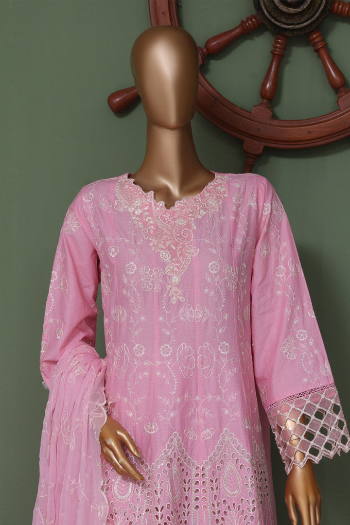 Bin Saeed Stitched 3 Piece Luxury Self Emb Cotton Frocks Collection'2024-SMK-1015-Pink