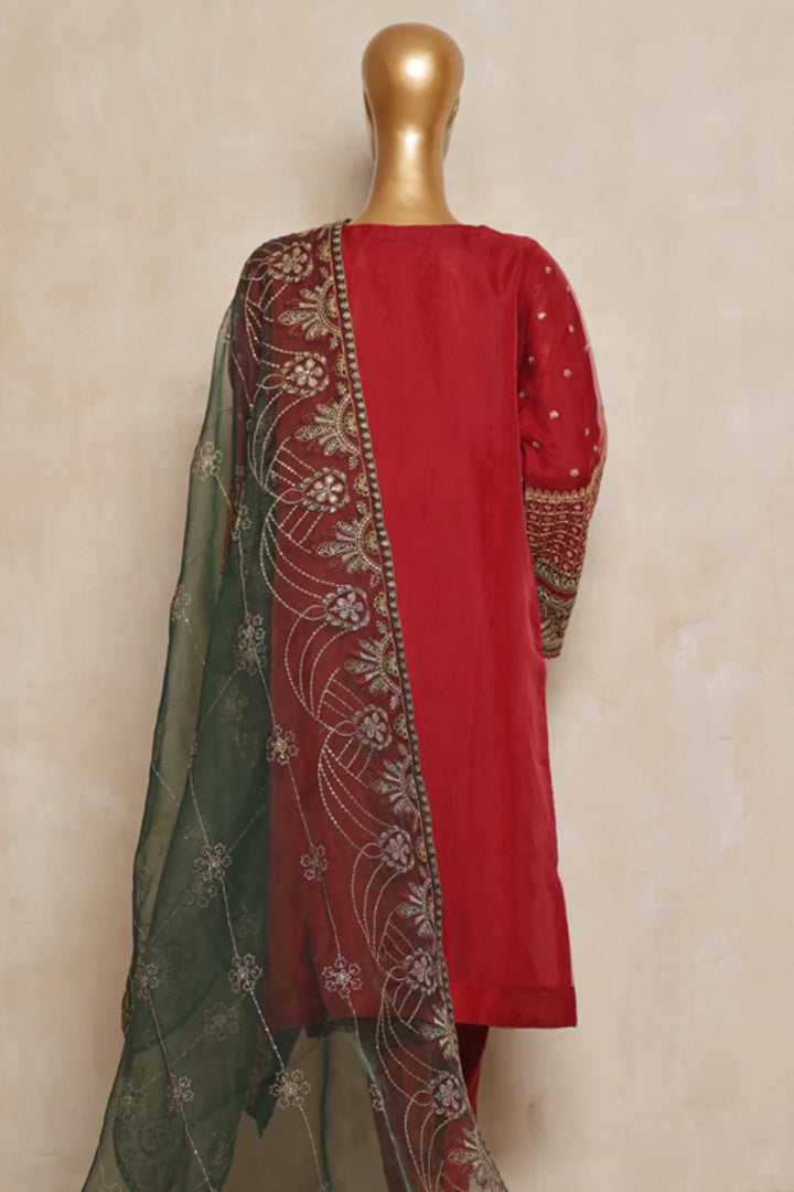 Bin Saeed Stitched 3 Piece Organza Festive Formals Collection'2024-RTS-301-Red