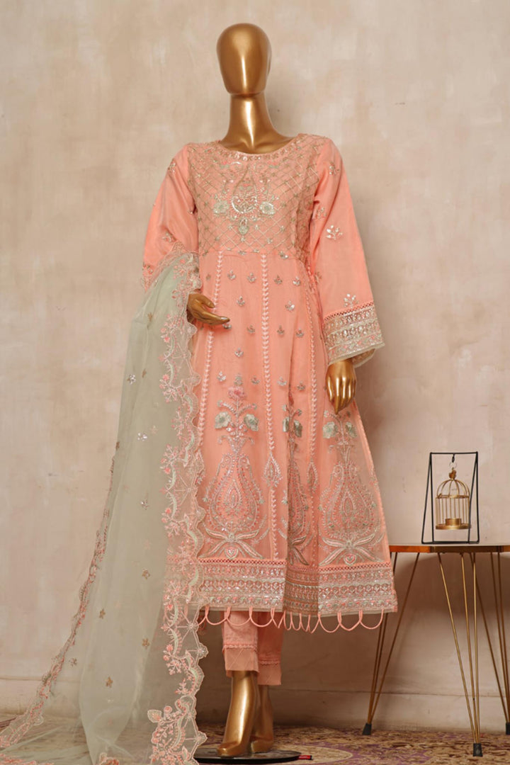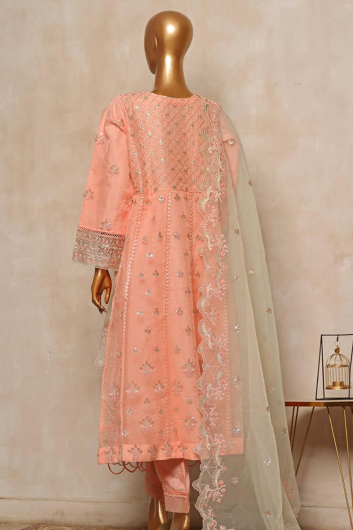 Bin Saeed Stitched 3 Piece Organza Festive Formals Collection'2024-STS-303-Peach