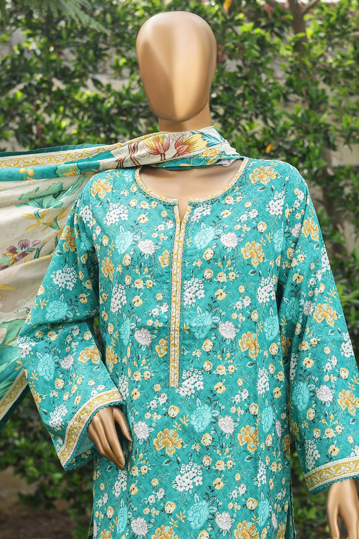 Bin Saeed Stitched 3 Piece Printed Cotton Mid Summer Collection'2024-WC-1019-Teal