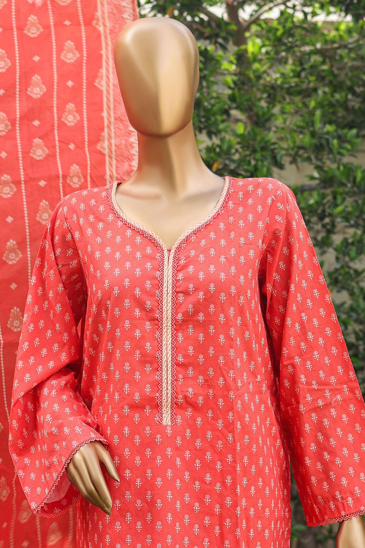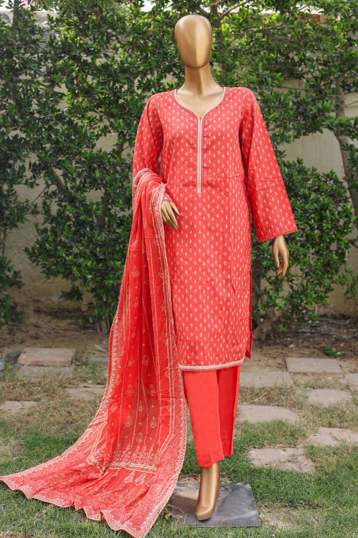 Bin Saeed Stitched 3 Piece Printed Cotton Mid Summer Collection'2024-WC-1021-Rust