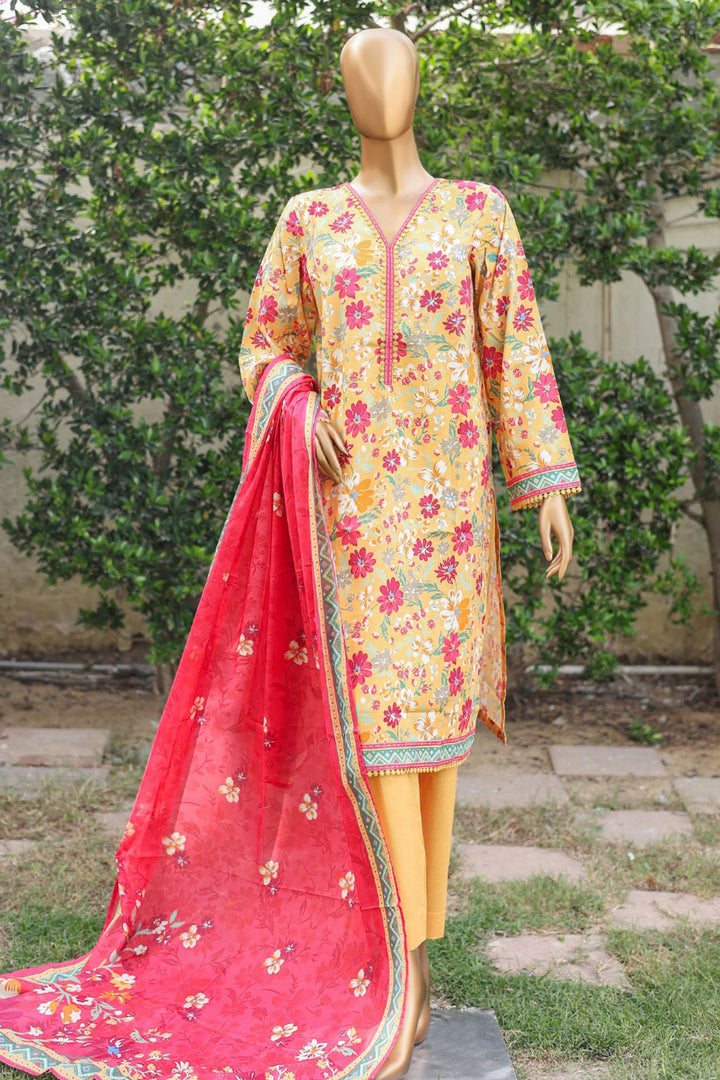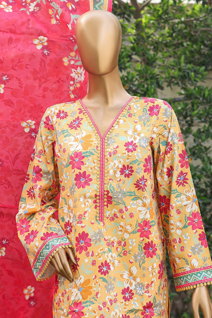 Bin Saeed Stitched 3 Piece Printed Cotton Mid Summer Collection'2024-WC-1023-Mustard