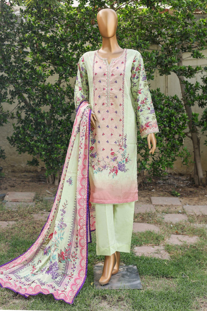 Bin Saeed Stitched 3 Piece Printed Cotton Mid Summer Collection'2024-WC-1070-Mint