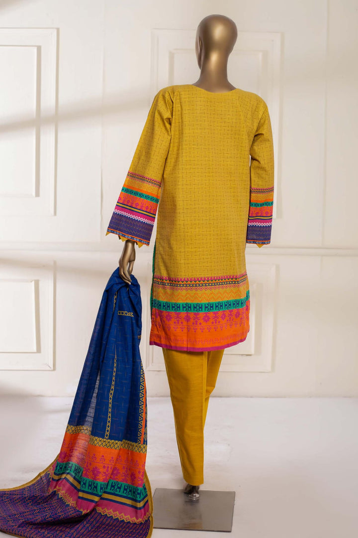 Bin Saeed Stitched 3 Piece Printed Khaddar Collection'2022-KF-0104-Yellow