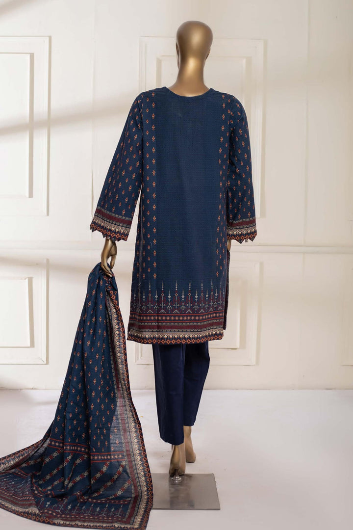 Bin Saeed Stitched 3 Piece Printed Khaddar Collection'2022-KF-0113-Blue