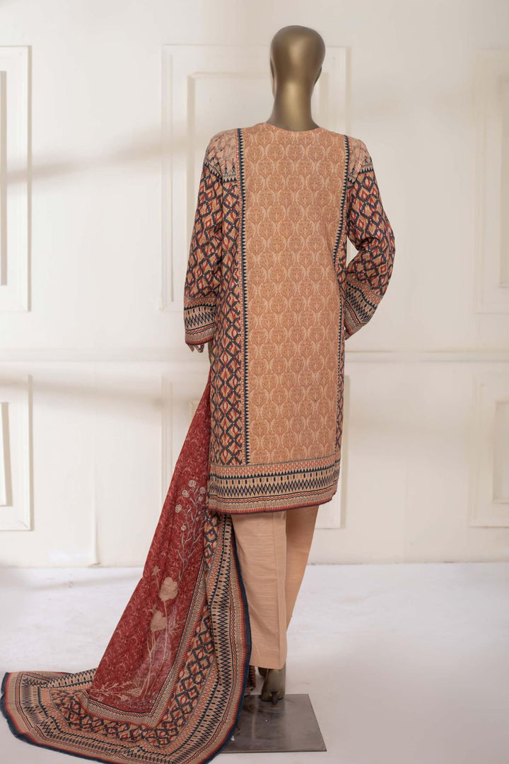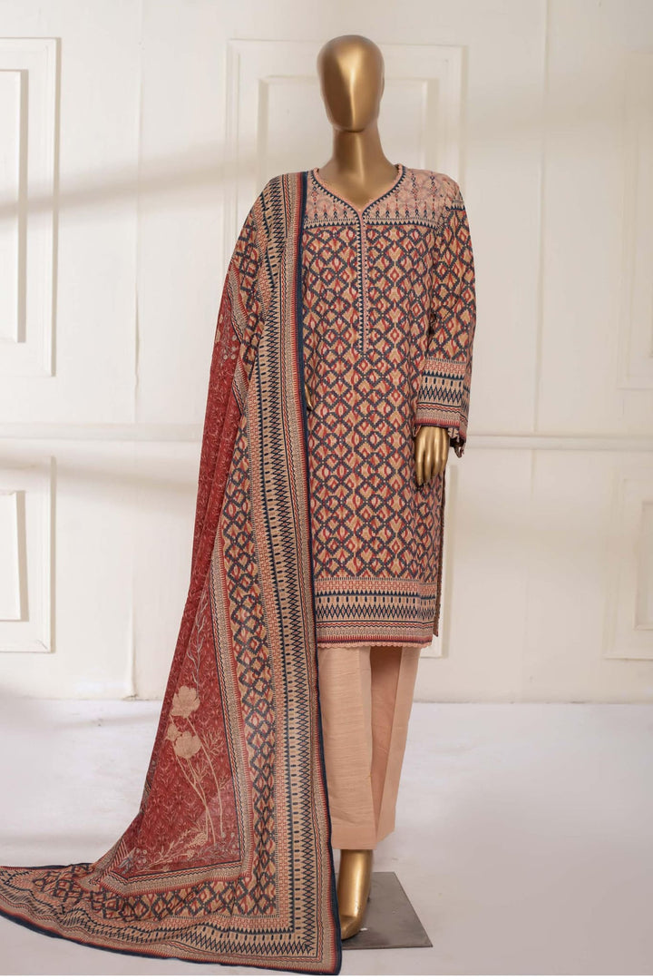 Bin Saeed Stitched 3 Piece Printed Khaddar Collection'2022-KF-0117-L.Peach