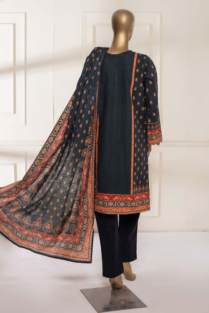 Bin Saeed Stitched 3 Piece Printed Khaddar Collection'2022-KF-0133-Black