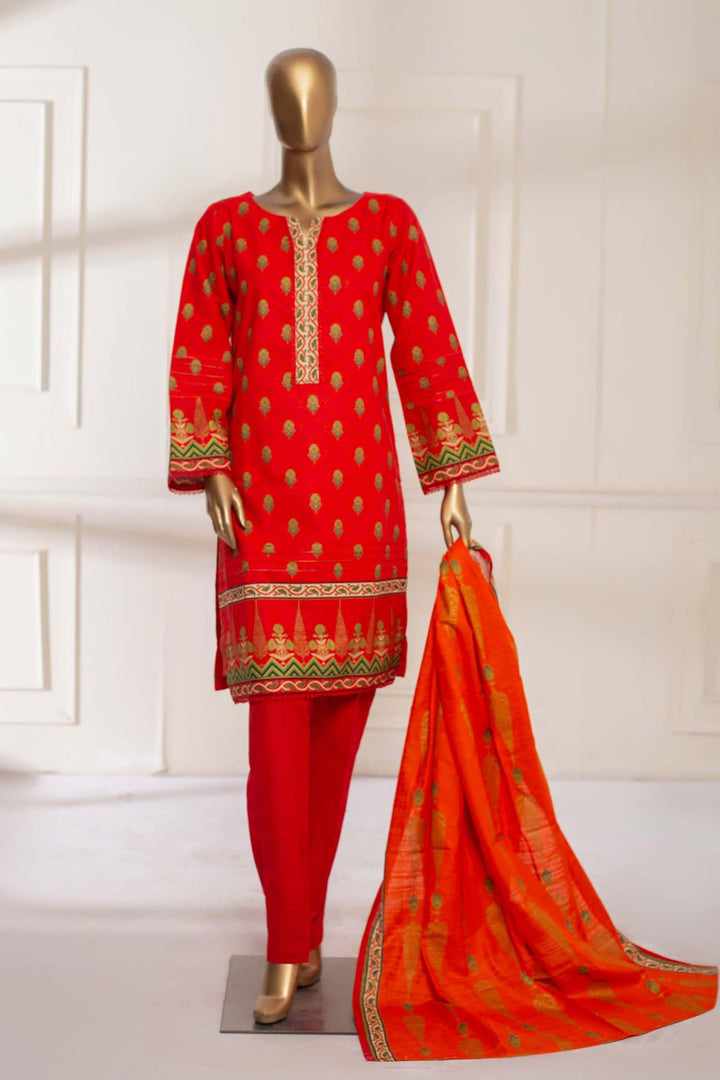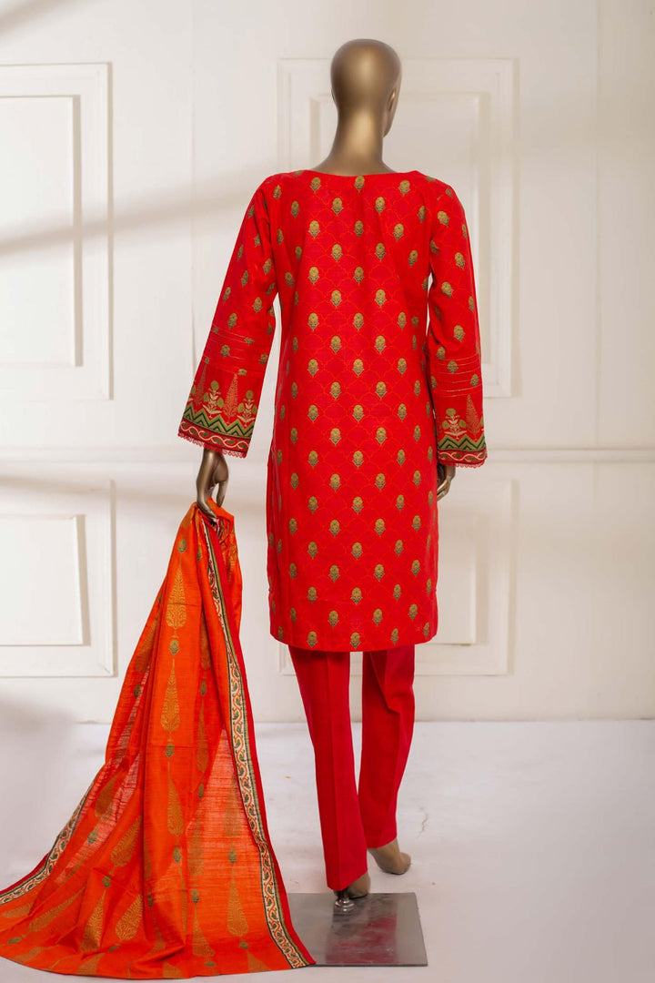 Bin Saeed Stitched 3 Piece Printed Khaddar Collection'2022-KF-086-Red