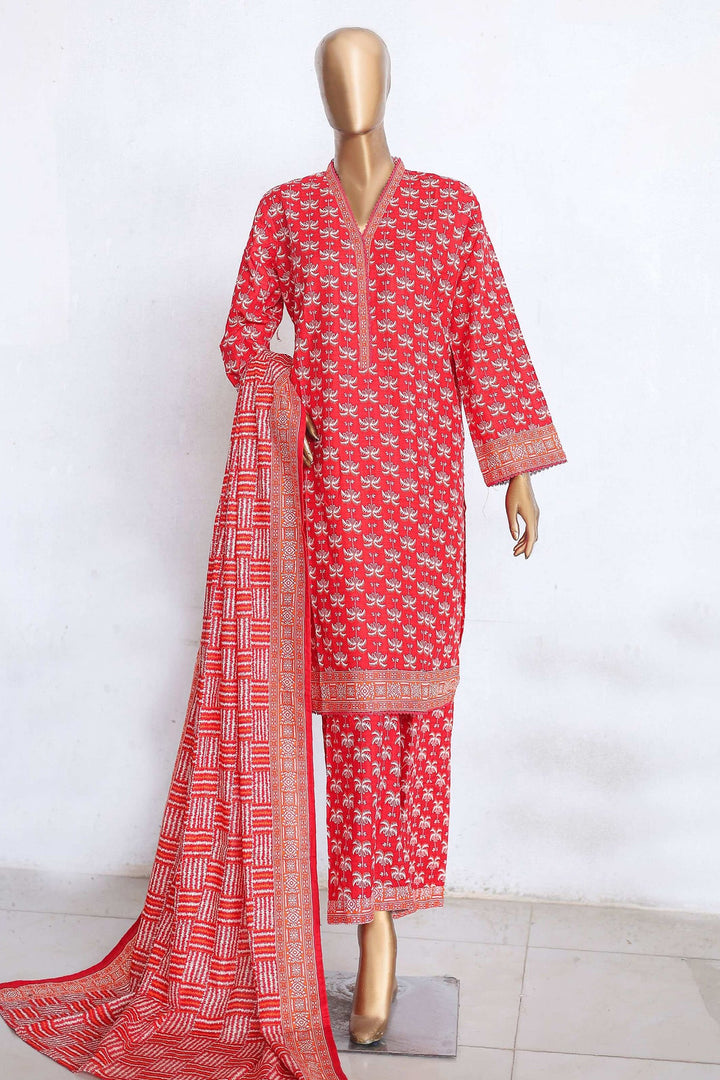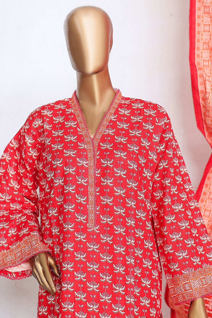 Bin Saeed Stitched 3 Piece Printed Khaddar Winters Collection'2024-WK-1002-Red