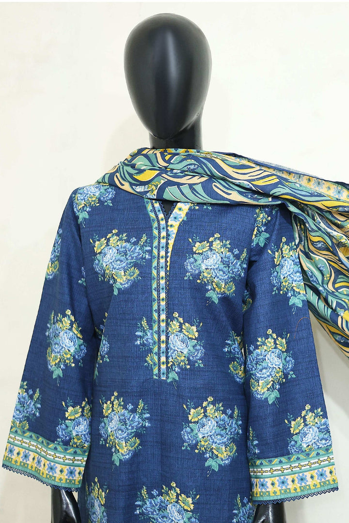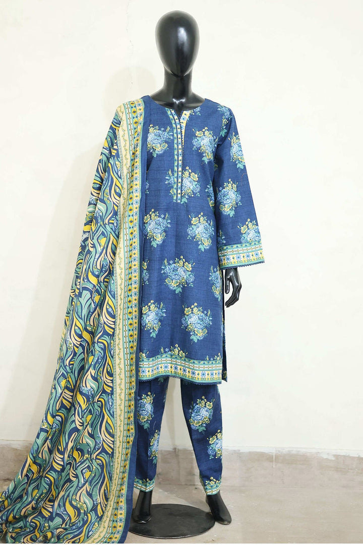 Bin Saeed Stitched 3 Piece Printed Khaddar Winters Collection'2024-WK-1004-Blue