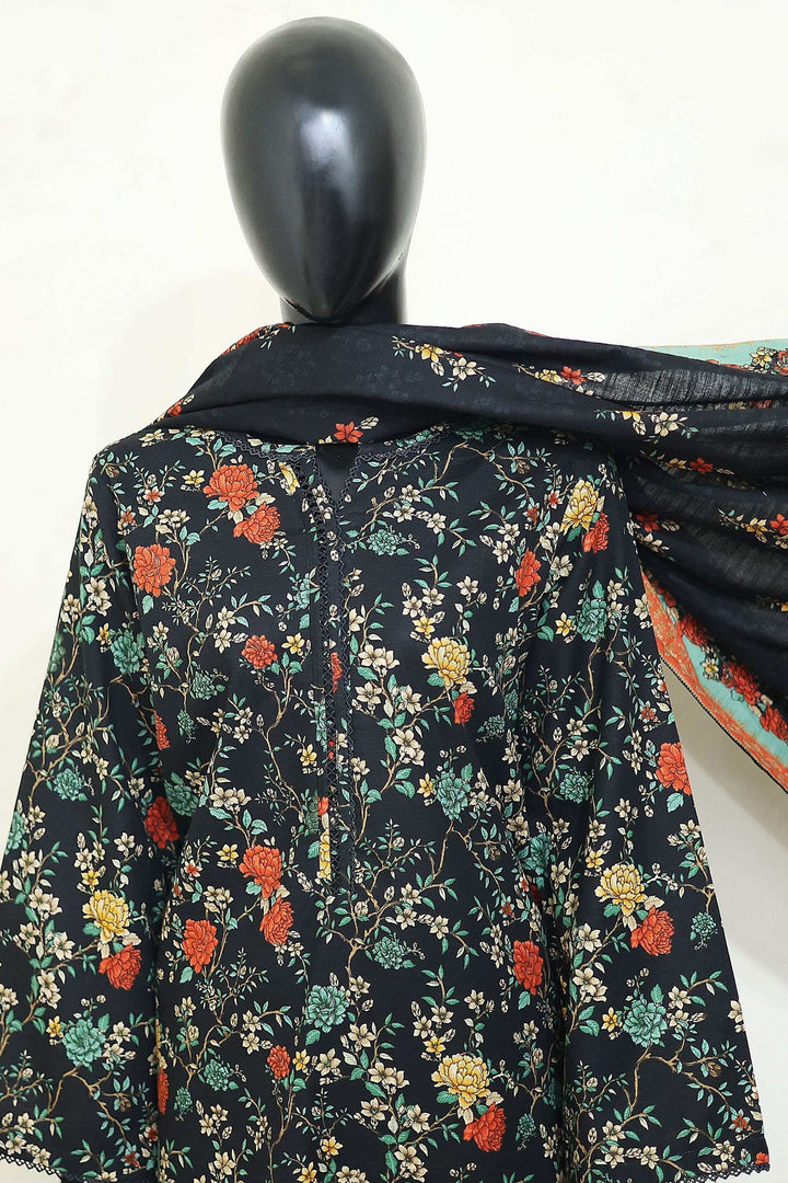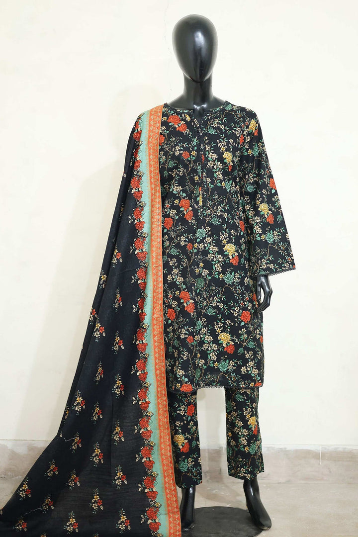 Bin Saeed Stitched 3 Piece Printed Khaddar Winters Collection'2024-WK-1005-Black