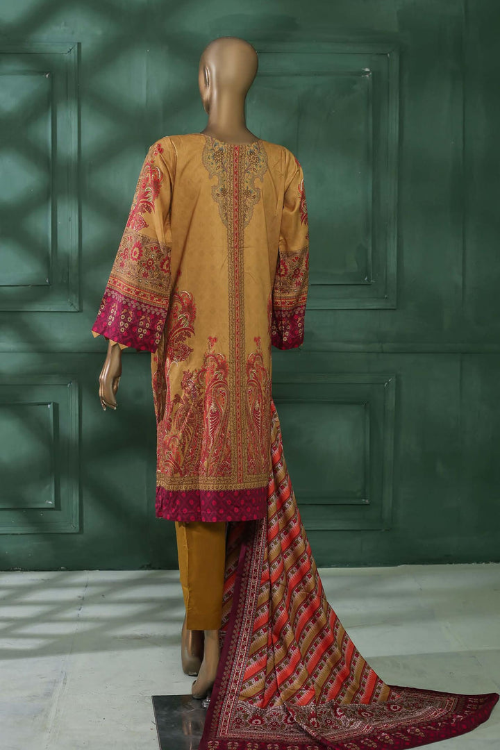 Bin Saeed Stitched 3 Piece Printed Linen Collection'2022-LIN-4918-Mustard