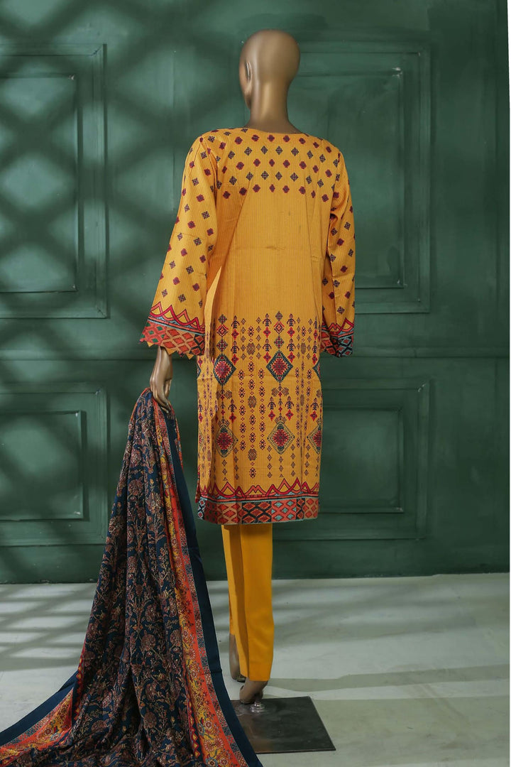 Bin Saeed Stitched 3 Piece Printed Linen Collection'2022-LIN-5440-Yellow