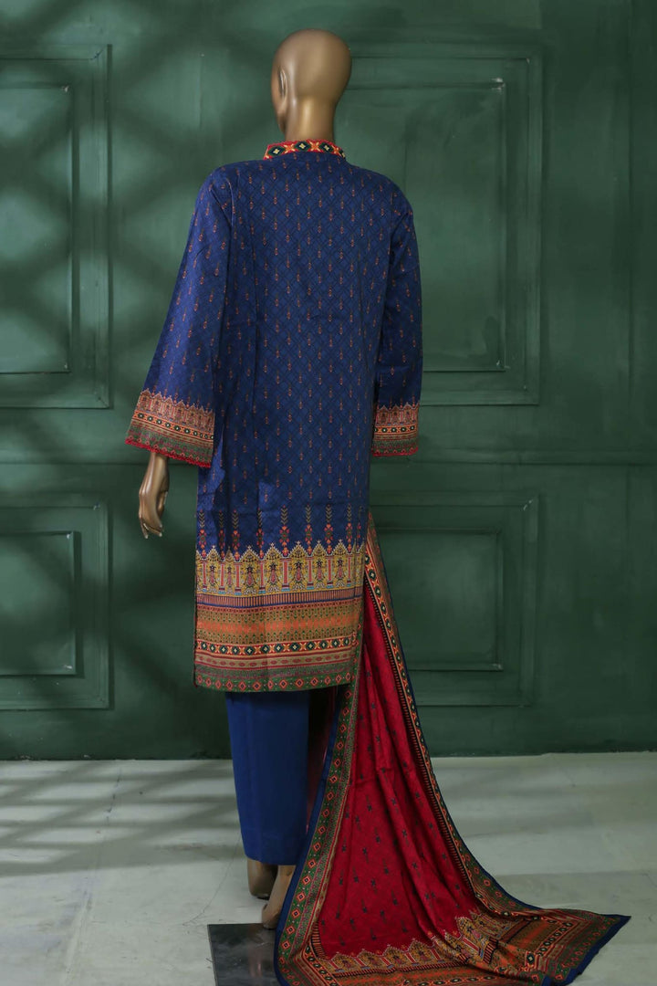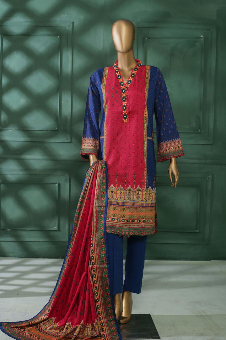 Bin Saeed Stitched 3 Piece Printed Linen Collection'2022-LIN-5839-Red