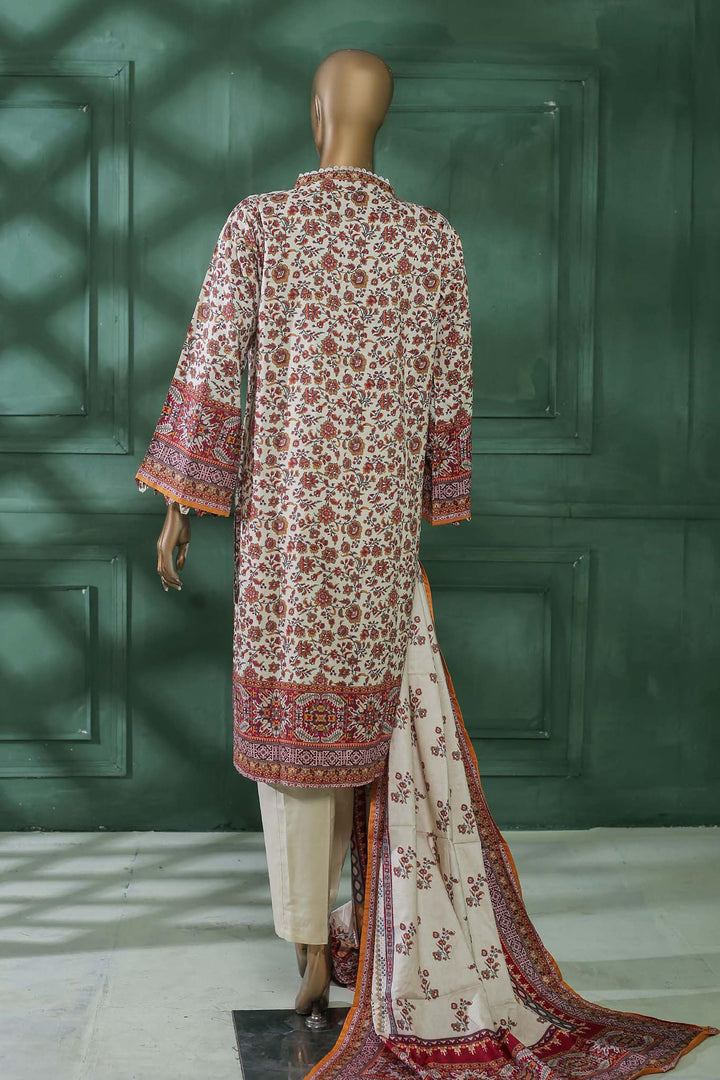 Bin Saeed Stitched 3 Piece Printed Linen Collection'2022-LIN-5961-Off White