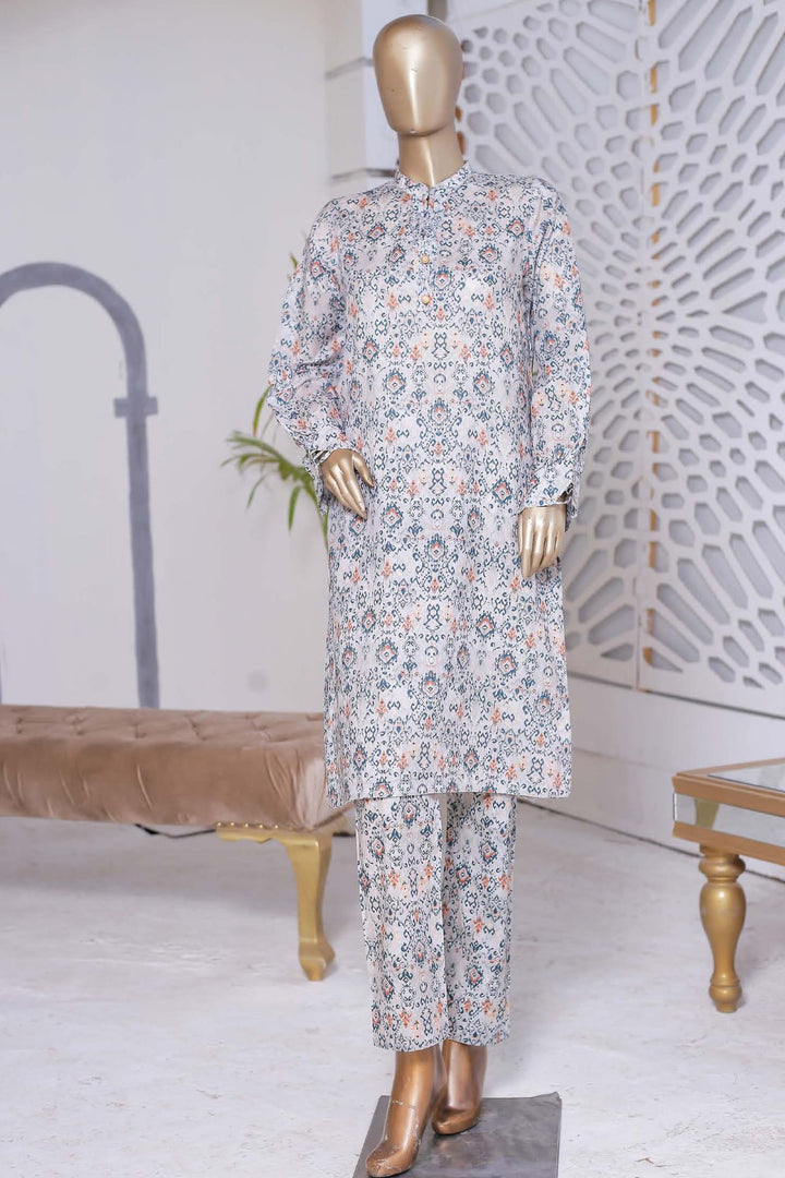 Bin Saeed Stitched Co Ords Printed Lawn Collection'2023-SMLSTF-054-White