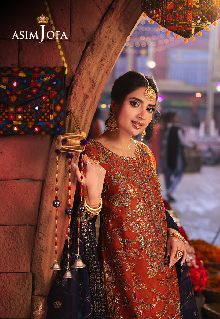 Chamkeeli By Asim Jofa Stitched 3 Piece Formals Pret Collection'2025-AJKKB-10 - Rust