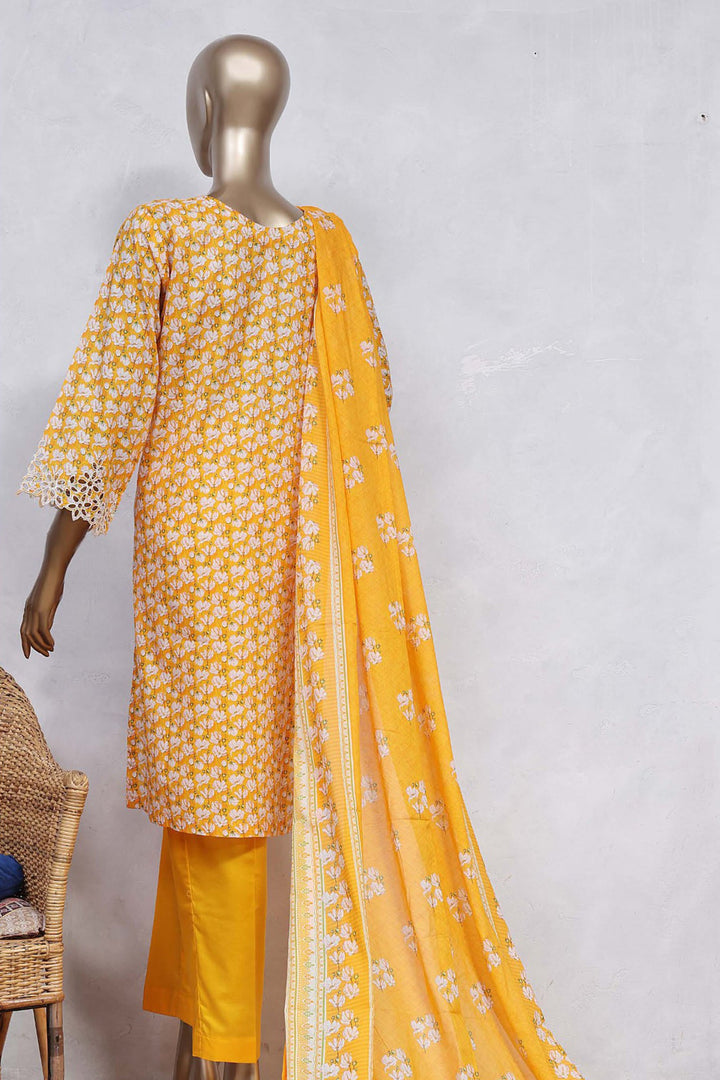 Chand Bagh by Bin Saeed Stitched 3 Piece Emb Lawn Vol-02 Collection'2023-SMLF-0499-Yellow