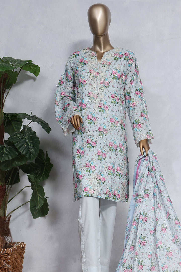 Chand Bagh by Bin Saeed Stitched 3 Piece Emb Lawn Vol-02 Collection'2023-SMLF-507-Sky