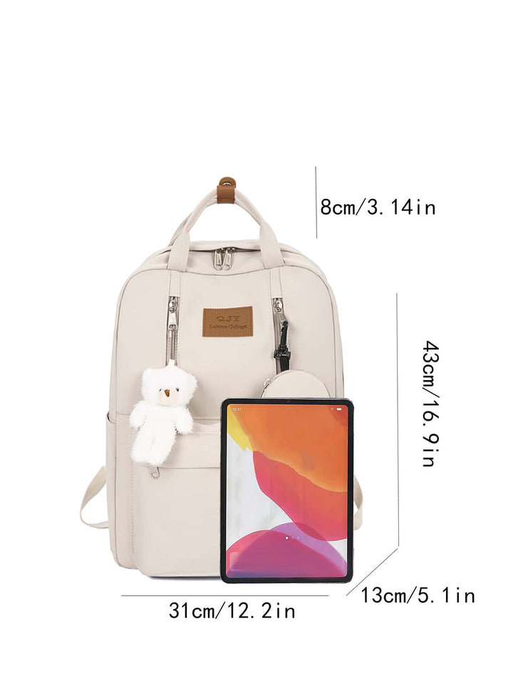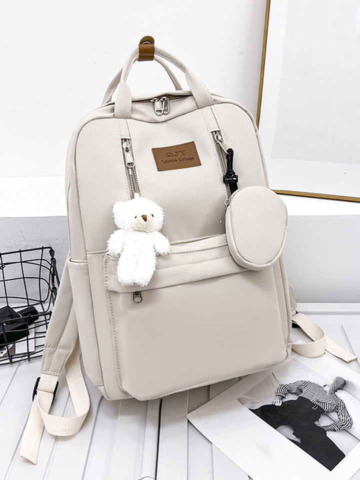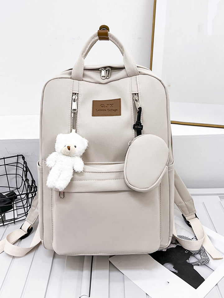 Shein - Classic, Casual Bear & Letter Patch Decor Functional Backpack With Coin Purse School Bag For Teen Girls, Women,College Students, Perfect For Outdoors ,Travel & Back To School, With Bear Pendant , Women Bag With Dime Bag