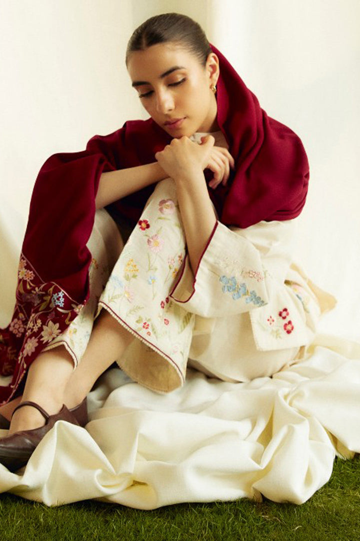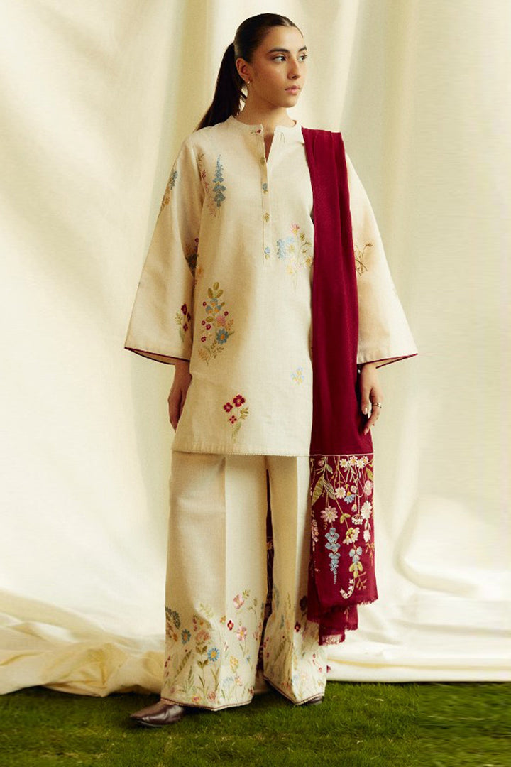 Embroidered Slub Khaddar Trouser 1.32 Mtrs
