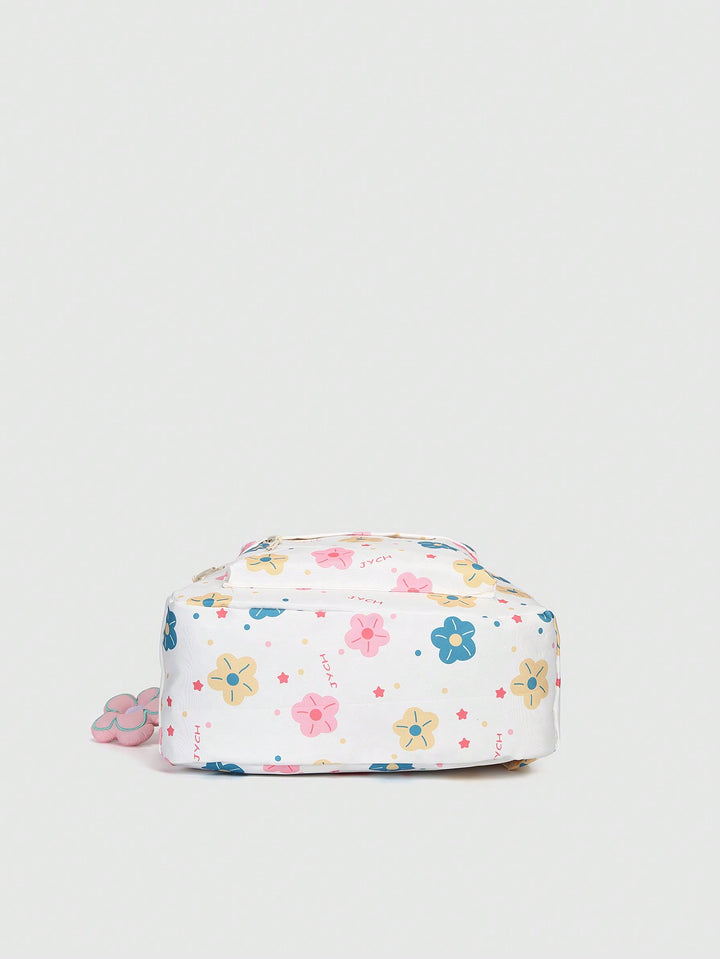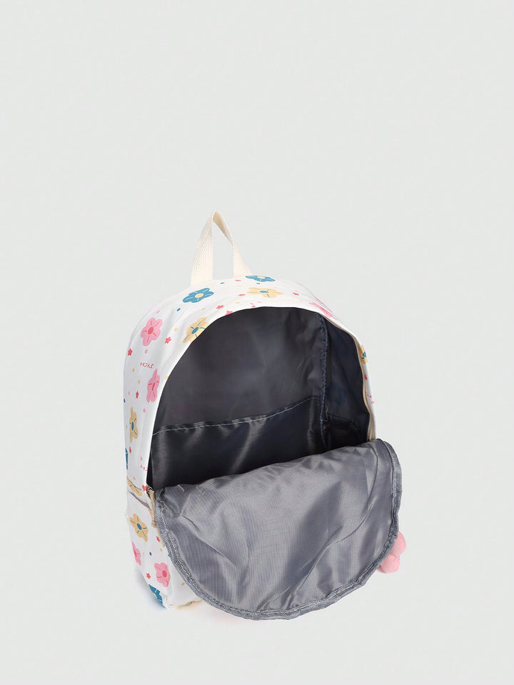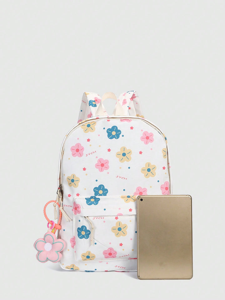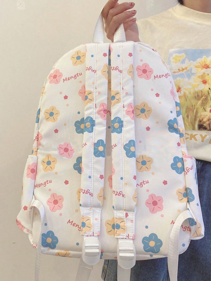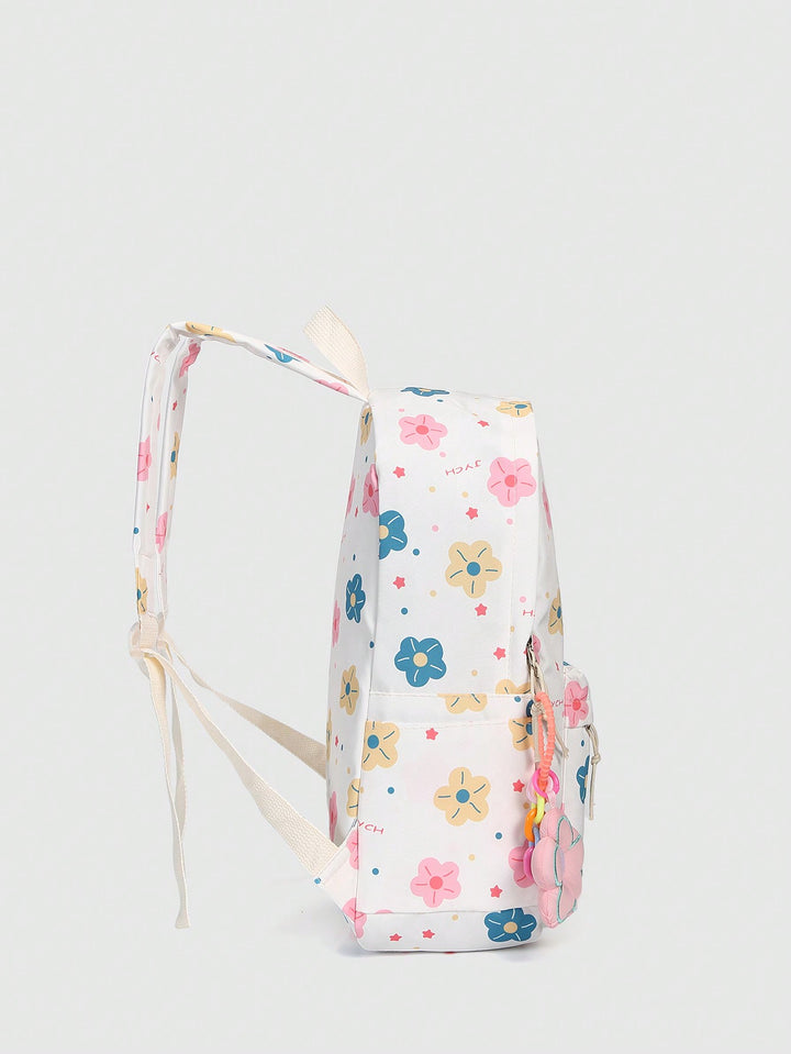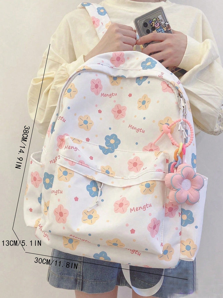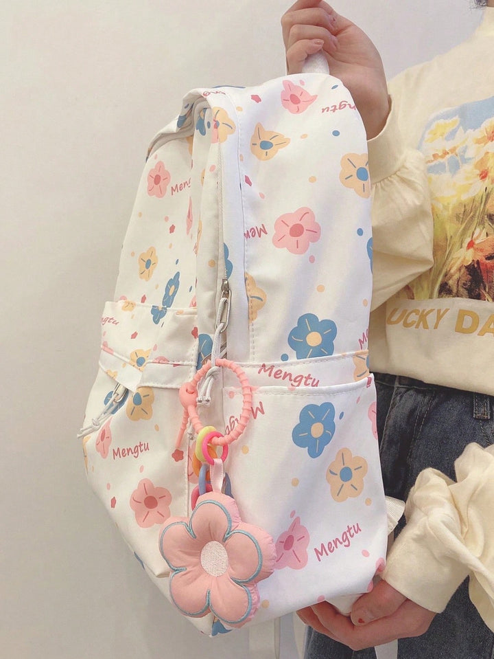 Shein - Cute Color Collision Cartoon Printed Backpack With Flower Pendant For Teen Girls, Casual School Bag With Large Capacityschool Backpackclassic,Casualfor Teen Girls Women College Studentsback To School,Outdoors, Travel, Outings