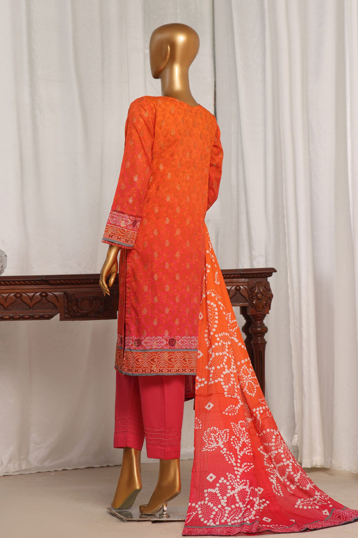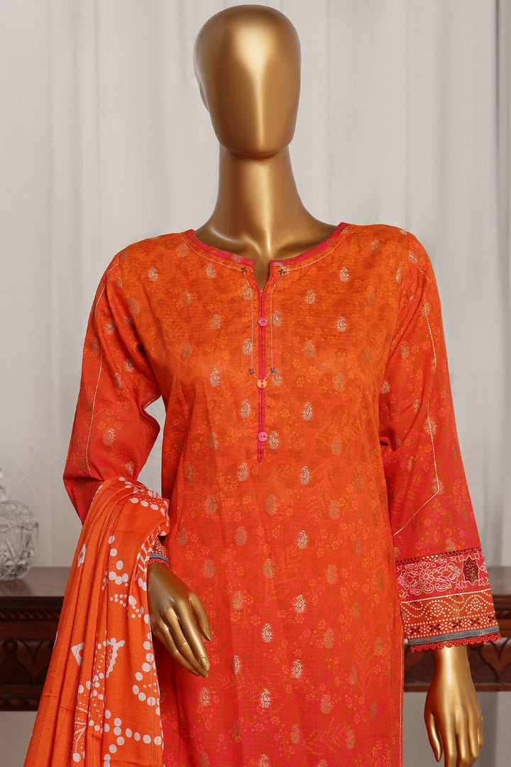 Damask by Hz Stitched 3 Piece Digital Printed Jacquard Collection'2024-PJL-705-Orange