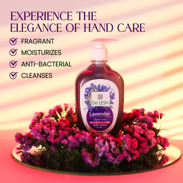 De'Lesh lavender liquid soap is quite gentle on the skin and totally suitable for all skin types, packed with powerful anti-bacterial properties making it perfect for cleansing and it is protective for all the family. Our formula features long lasting fragrance and natural moisturizers which efficiently wash and moisturize the skin. Natural ingredients in the formula will provide you softer and smooth skin