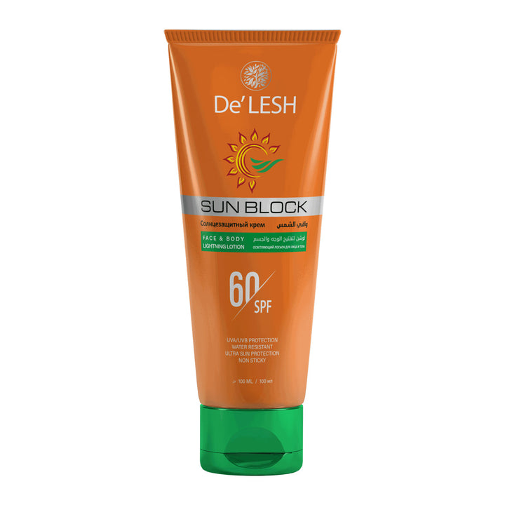 De'Lesh SPF 60 sunscreen protects your skin from harmful, damage-causing ultra violet rays better than anything else. Our revolutionary SPF 60 formula not only protects your skin but also gives your skin the nourishment it needs. The lightweight texture of this sunscreen is Ultra smooth, never irritates the skin and easily blended. You’ll be comfortable to wear it every day because it lefts no chalky residue behind. This sunblock makes your skin look younger and brighter