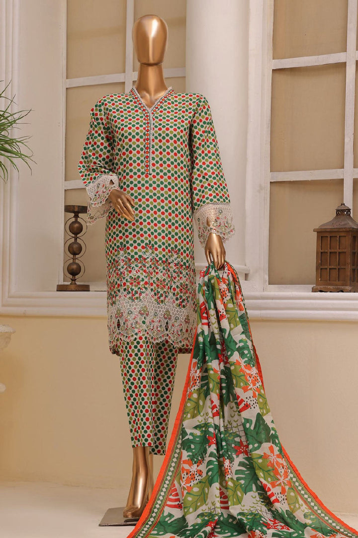 Eid Ke Rang By Bin Saeed Stitched 3 Piece Chikankari Lawn Collection'2025-SM-1771-Green