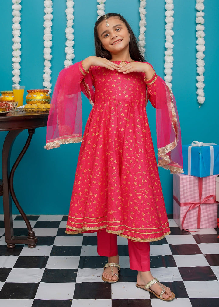 Introduce a splash of color to your child's wardrobe with our Girls' Festive Wear Frock Set