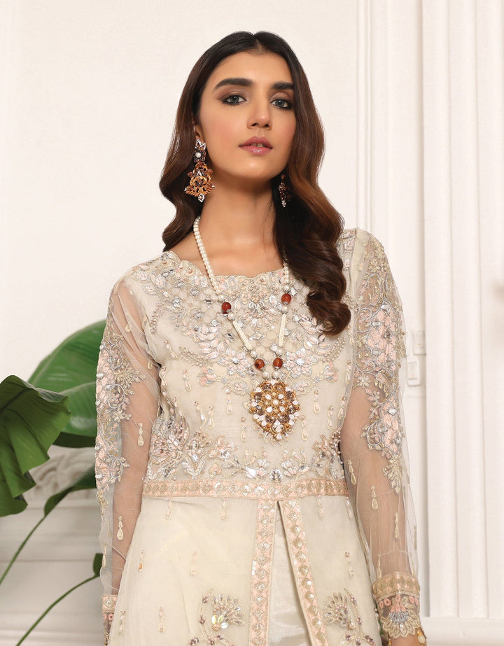 Net Embroidered Hand Made Front Right And Left Body Net Embroidered Hand Made Front Right And Left Panels Net Embroidered Front Side Panels Net Embroidered Back Body Net Embroidered Back Right And Left Panels Net Embroidered Back Side Panels Net Embroidered Sleeves Organza Bindi Dupatta Organza Embroidered Front Panels Lace Organza Embroidered Front And Back Border Organza Embroidered Border For Dupatta Palo Organza Embroidered Lace For Dupatta Dyed Raw Silk Trouser