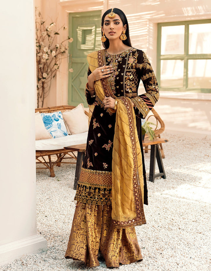 Velvet Embroidered Back Motif with Cording and sequins work.