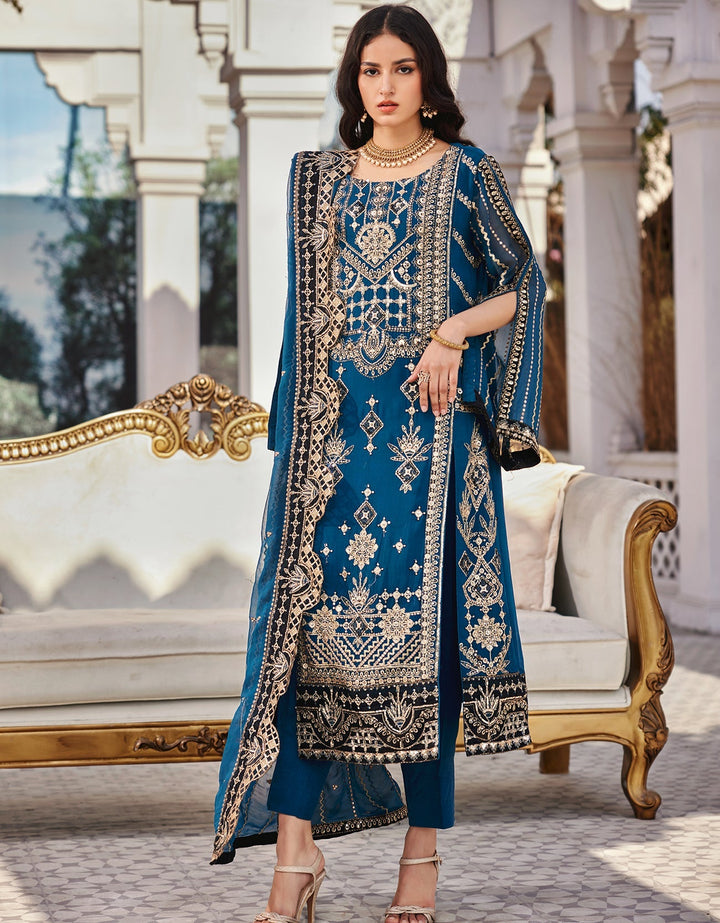 Chiffon Embroidered Front Right and Left Panels with Multi sequins work.